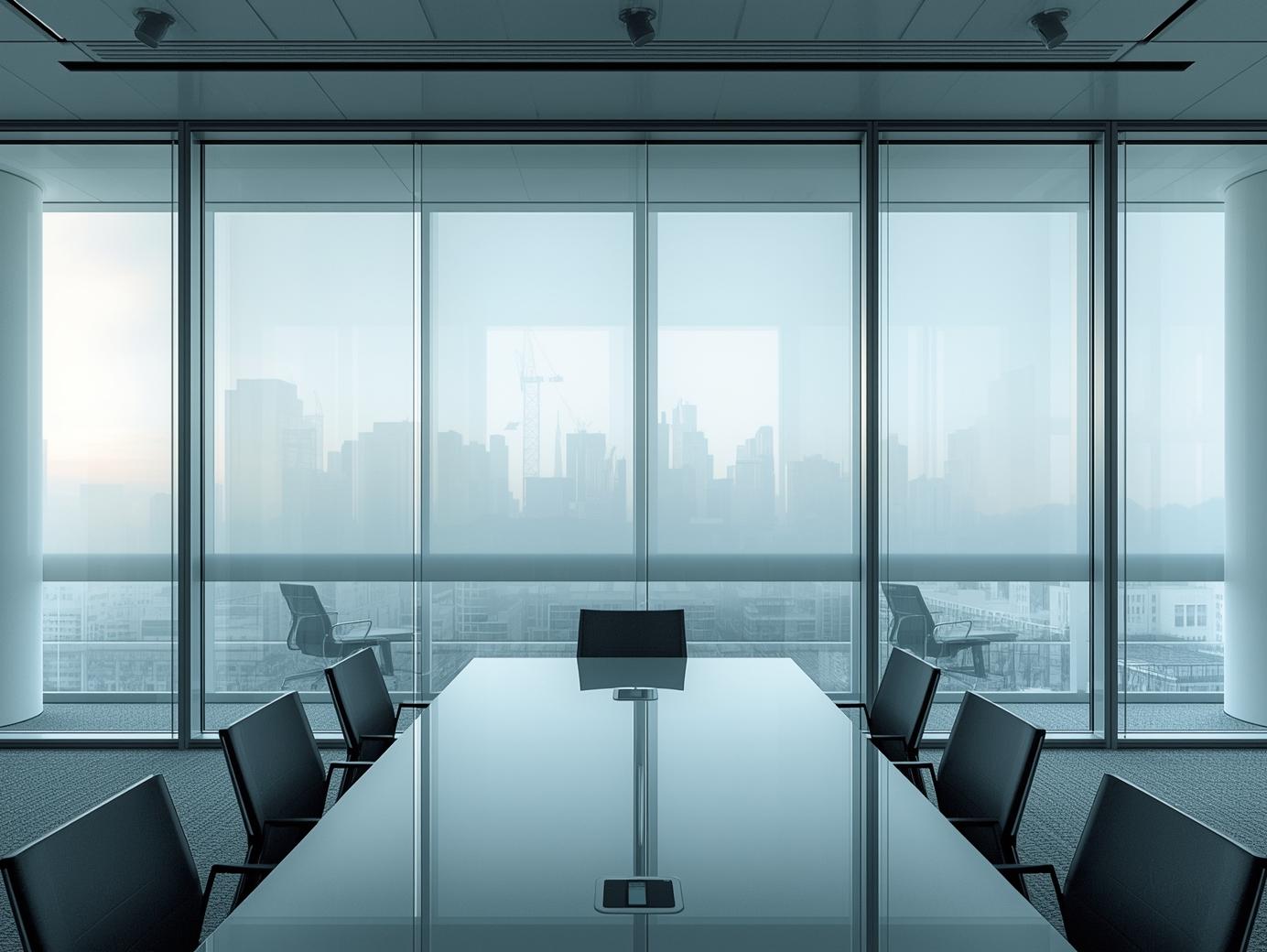 Glass that tints on demand to reduce glare and cooling loads in meeting rooms.