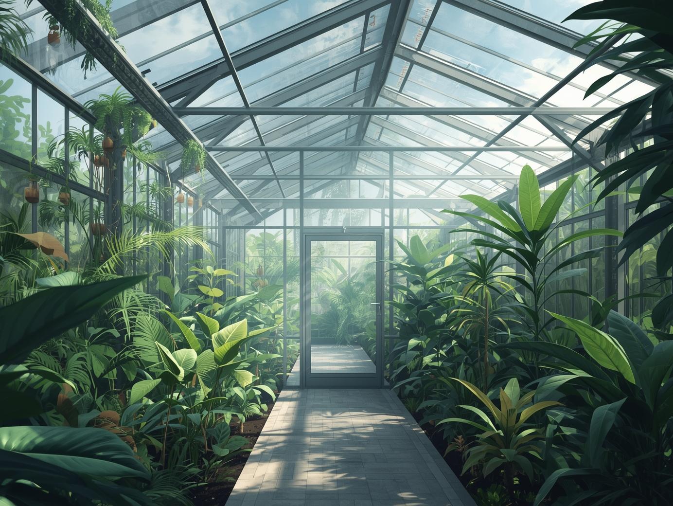 Window coatings that adjust light transmission for plant growth and temperature control.